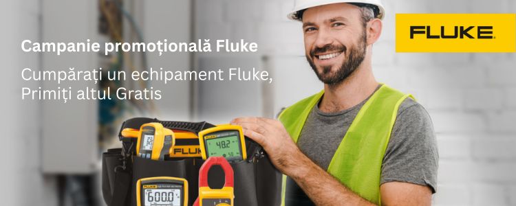 Cumparati oricare dintre produsele Fluke (Industrial, Calibrare și/sau Networks, Beha-Amprobe) si solicitati un produs oferit in mod GRATUIT intrand pe http://www.fluke.com/en/freegift. Fluke va avea grija sa va trimita noul produs.