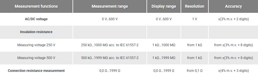 • Measuring category according to EN 61010: IV 600 V, III 1000 V